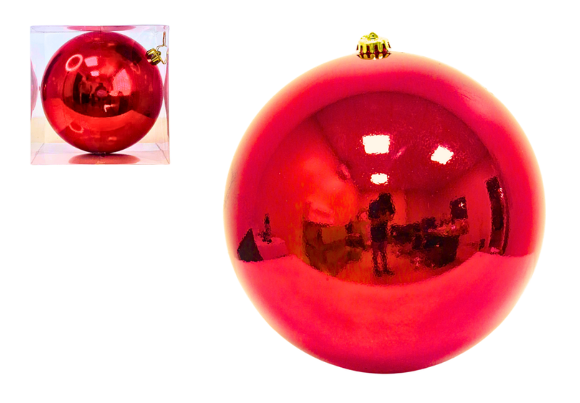 A Bola Natalina Vermelha 25 cm é perfeita para criar pontos de destaque na decoração. O acabamento brilhante reflete as luzes e amplia a sensação de profundidade na árvore, em guirlandas gigantes, pendentes e cenografias.