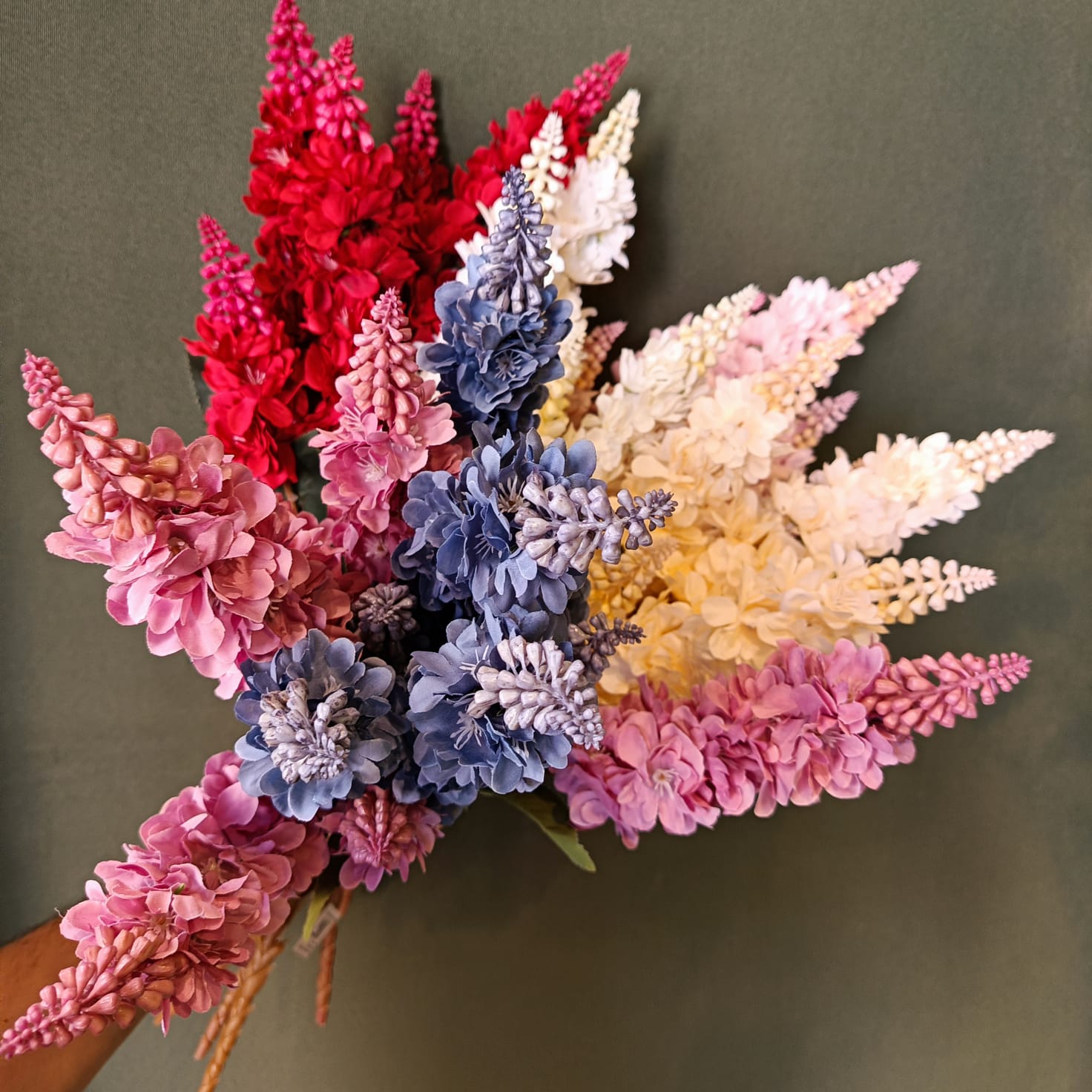 Buque composto com 4 flores maiores e 3 menores. 60 cm de altura.