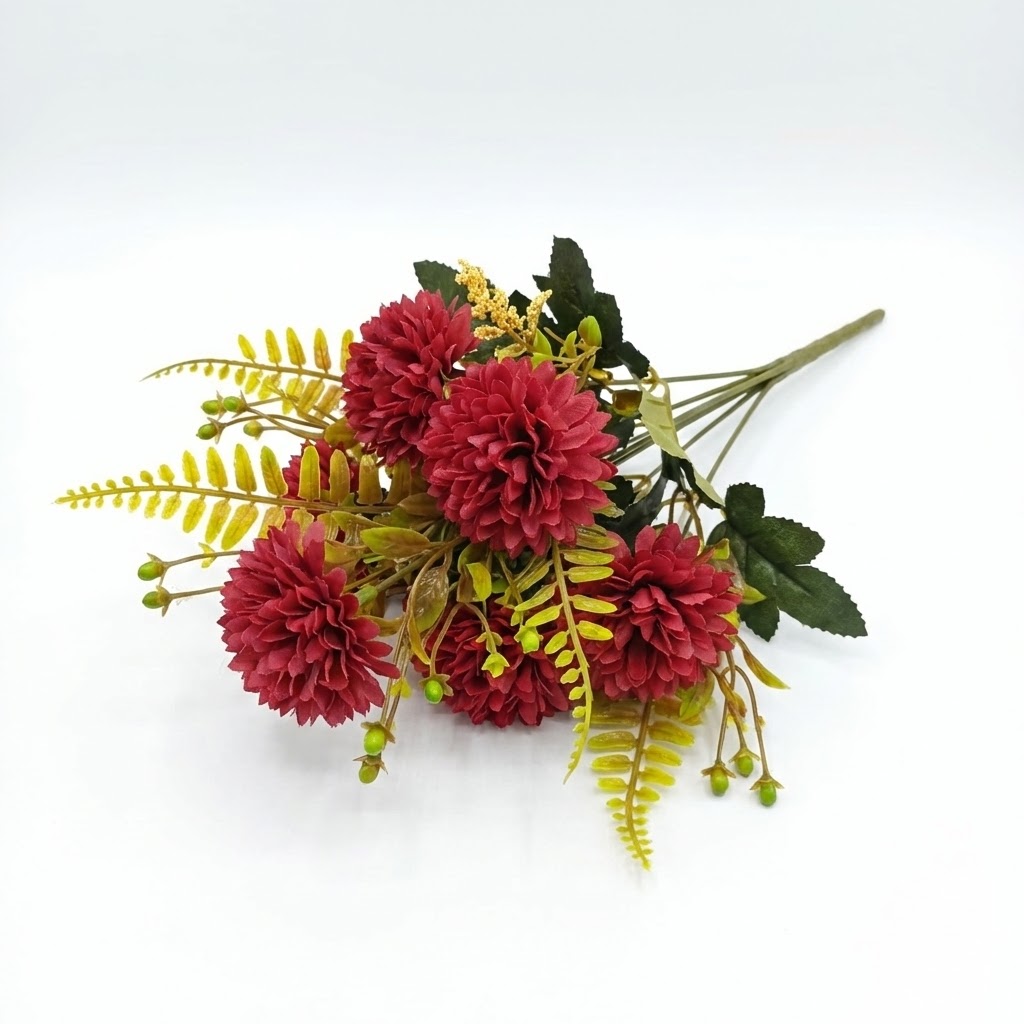 Quer dar um ponto de cor marcante na decoração sem ter trabalho? Este buque de crisântemo artificial vermelho é ideal. Com aprox. 25cm de altura e 7 flores bem cheias, ele traz aquele vermelho intenso que se destaca em qualquer cantinho, acompanhado de folhagens que deixam o arranjo mais cheio e harmonioso.