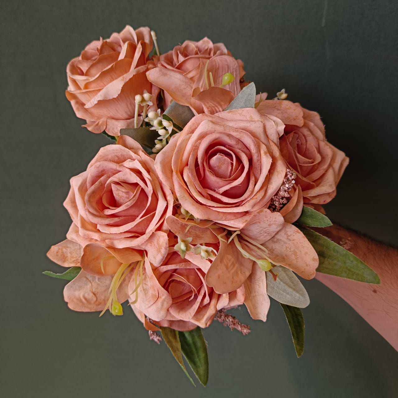 BUQUÊ ROSA E LIRIO C/9 29CM - CHÁ - 128677