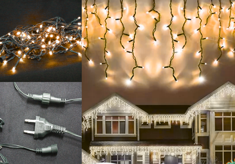 A Cascata Estrobo 6m x 60cm com 250 LEDs cria o efeito de neve caindo com flash 100% estrobo em branco quente, ideal para fachadas, beirais, varandas, vitrines e cenários natalinos ao ar livre. O fio verde 1,5 mm é resistente para uso externo e os conectores macho e fêmea com rosca facilitam a instalação e o encadeamento de módulos (sem caixa seletora). Quedas alternadas de 60/45/30 cm dão movimento e volume de luz com visual profissional.