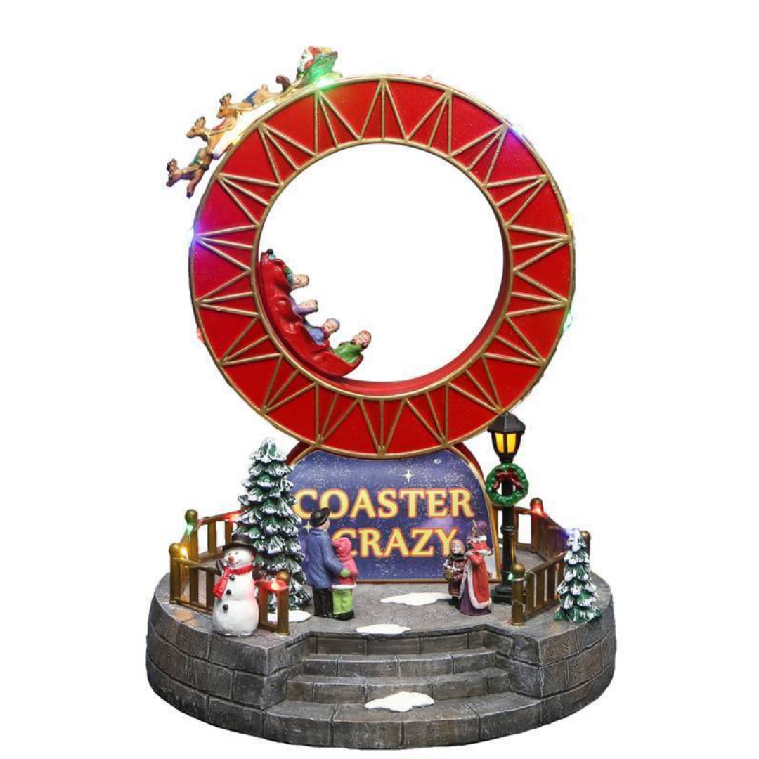 - Design Encantador: Com detalhes impecáveis, a montanha-russa é revestida em vermelho vibrante e conta com um trenó repleto de personagens natalinos.