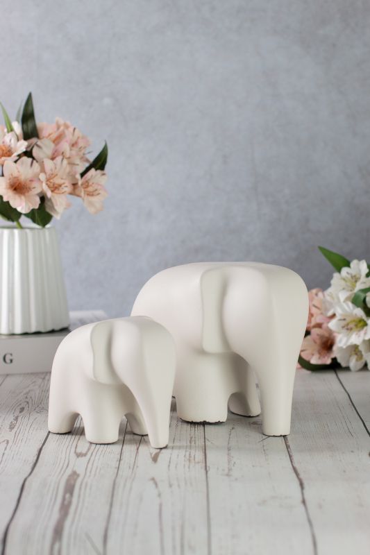 Família de elefantes - mamãe e filhote. Composto por duas peças. Medidas: elefante maior: 15,5cm altura x 20cm largura. Elefante menor: 11,5 altura x 14cm largura. Com base forrada para evitar arranhões.