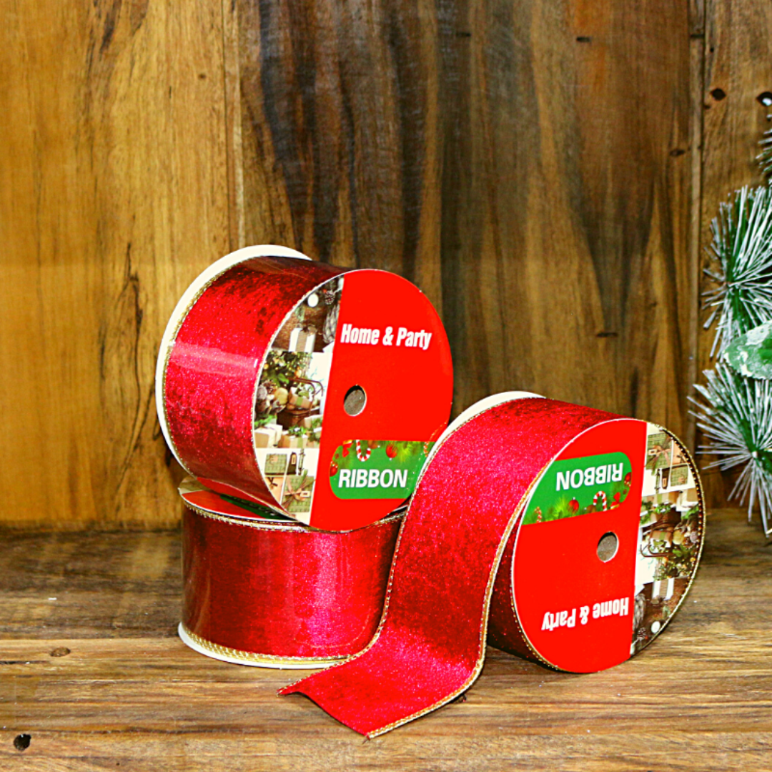 Fita Aramada Aveludada Dupla Face Natalina 6,3 cm x 9 metros – Perfeita para Decoração de Natal