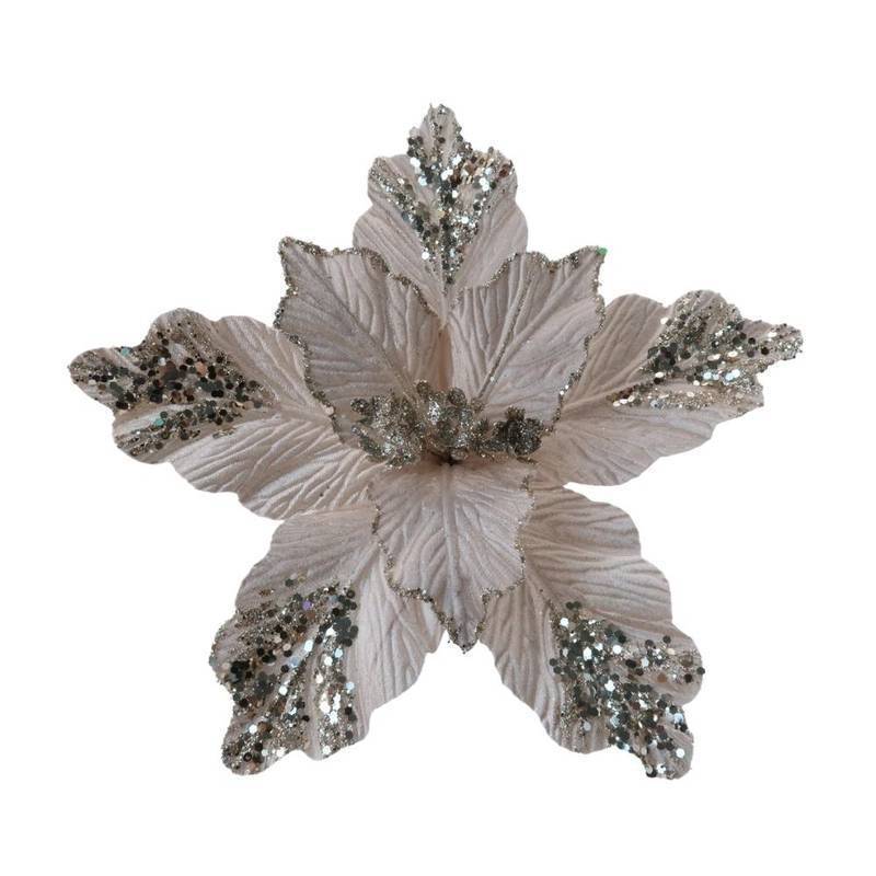 Ideal para quem deseja um Natal encantador, a Flor Natalina Champanhe é a escolha perfeita para dar vida, brilho e harmonia à sua composição natalina.