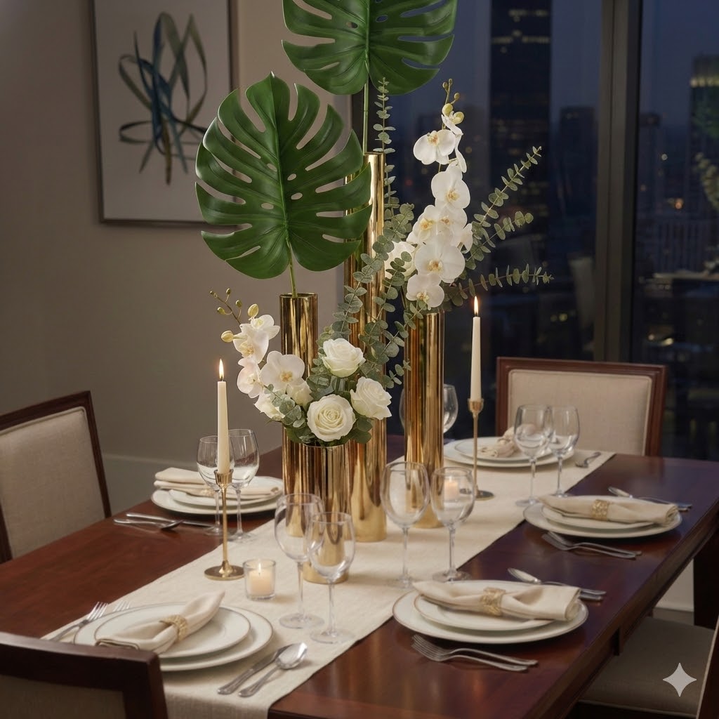 Por ser uma folhagem versátil, funciona tanto sozinha (como destaque em um vaso) quanto em conjunto com outras folhas e flores artificiais, criando volume e um efeito tropical elegante. Excelente para sala, hall de entrada, escritório, recepções, vitrines e eventos.
