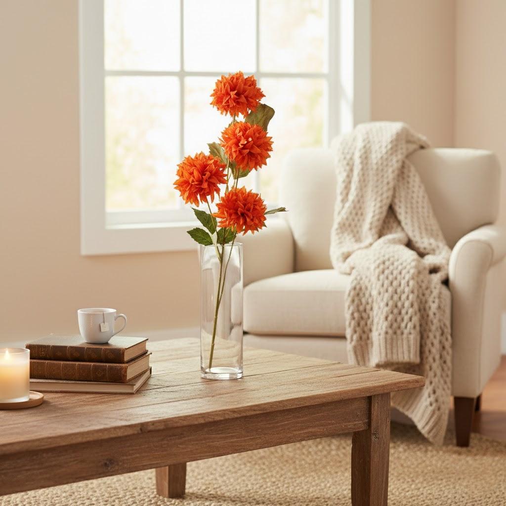 O Galho Allium X4 Laranja 50cm é perfeito para quem quer trazer energia, cor e elegância para a decoração. Com 4 flores tipo pompom (allium) na cor laranja, ele cria um efeito volumoso e moderno, ideal para arranjos em vasos, centros de mesa, aparadores e composições para eventos.