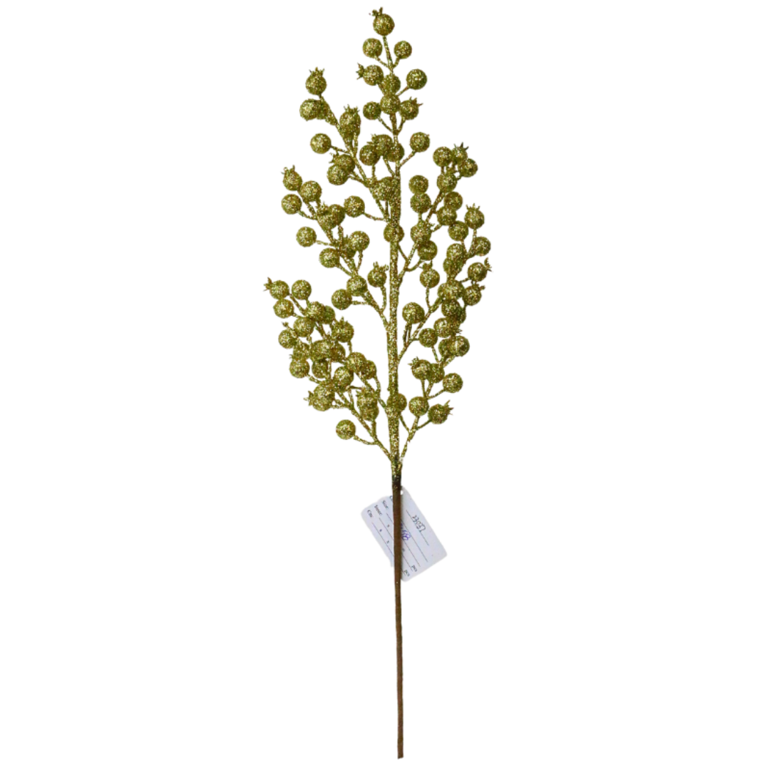 Dê um toque de sofisticação à sua decoração de Natal com a Haste de Natal Azevinha Dourada. Com seus delicados ramos repletos de pequenas esferas douradas brilhantes, esta haste é perfeita para enriquecer arranjos, enfeites de árvores, guirlandas ou até centros de mesa. Sua altura de 60 cm oferece uma presença marcante e elegante, destacando o brilho dourado que reflete o espírito natalino.