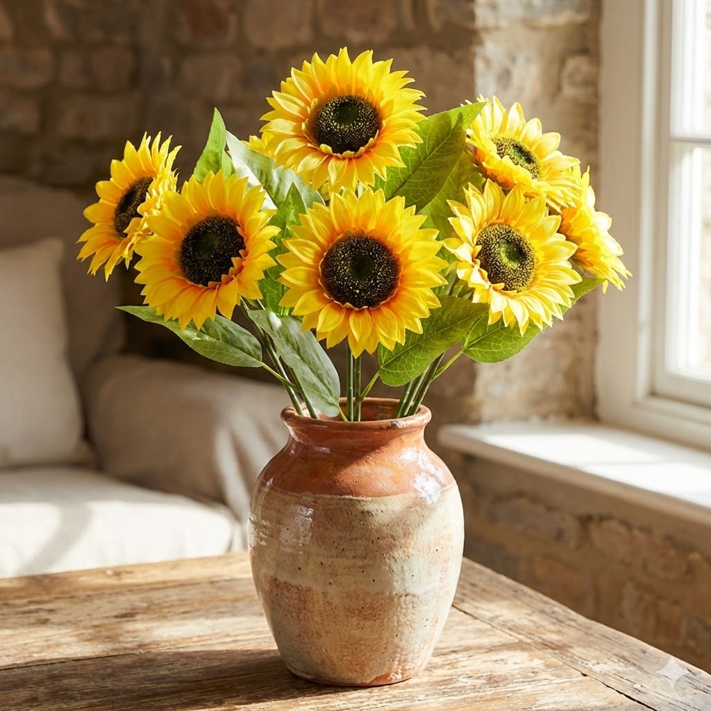 A Haste Girassol Unitário 13cm x 40cm é a escolha certa para levar alegria e luminosidade aos seus arranjos com o efeito realista das flores artificiais premium. Com cálice de 13 cm e altura total de 40 cm, a peça traz pétalas vibrantes, miolo texturizado e folhas detalhadas, garantindo presença em vasos, guirlandas, arcos, buquês e cenografias. Ideal para decoração de sala, cozinha, área gourmet, vitrines e eventos — beleza o ano todo, sem manutenção.