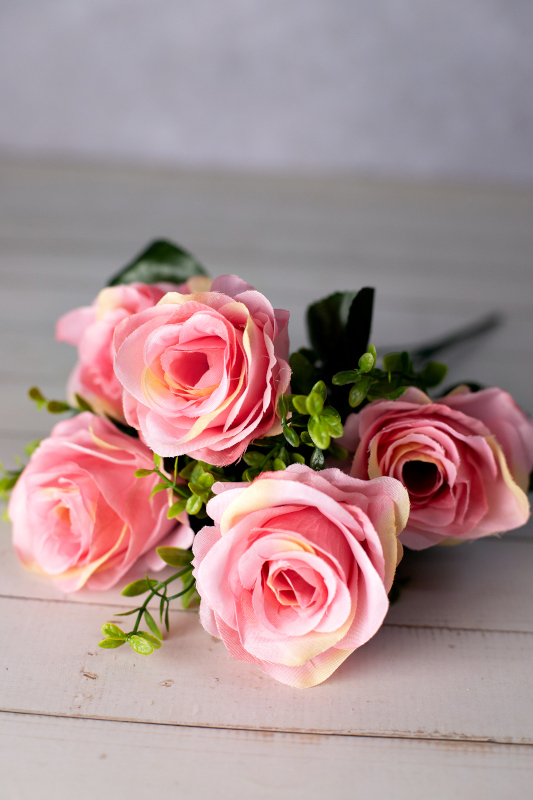 KIT ATACADO 10 BUQUE ROSA ARTIFICIAL C/5 BOTOES 39CM ROSA 130225