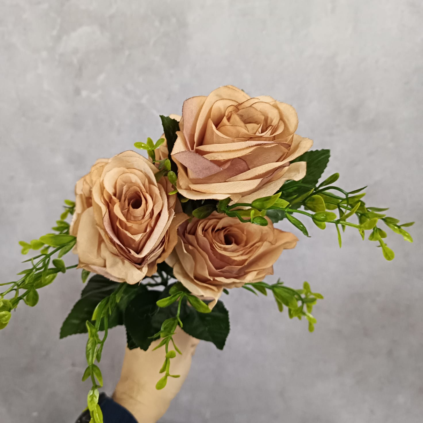 KIT ATACADO 10 BUQUE ROSA ARTIFICIAL C/5 BOTOES 39CM TERRA COTA 130227