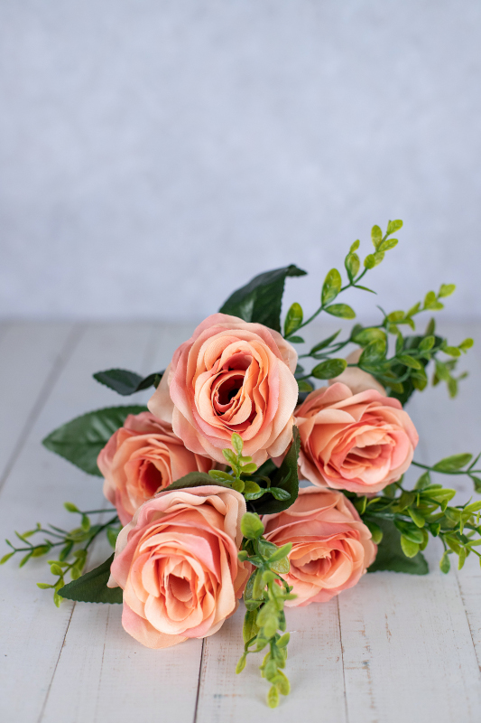 KIT ATACADO 10 ROSA ARTIFICIAL BUQUE 5 BOTOES 39CM ROSA OUTONADO 130226