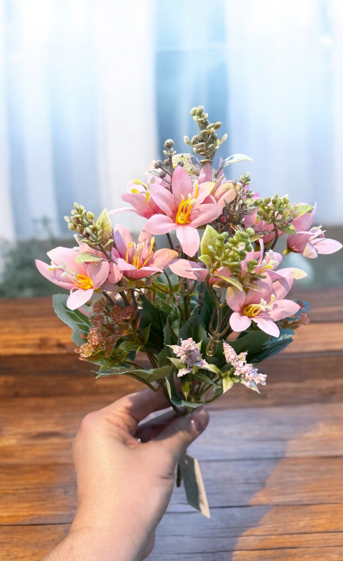 Este buquê de lírios artificiais de 20cm em tons suaves de rosa é perfeito para quem busca uma decoração elegante e duradoura. Feito com materiais de alta qualidade, ele traz a beleza natural das flores para o seu ambiente sem a necessidade de cuidados especiais. Ideal para decorar mesas, escritórios ou até presentear em ocasiões especiais. Dê vida aos seus espaços com esse buquê encantador!
