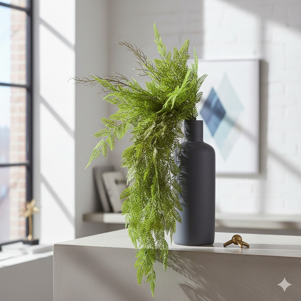 Transforme qualquer ambiente com um efeito “cascata” super natural. O Pendente Luxo X5 112cm é uma folhagem artificial alongada, com ótimo volume e caimento, perfeita para compor vasos suspensos, jardins verticais, painéis verdes, arranjos em vasos altos e cenários para eventos.