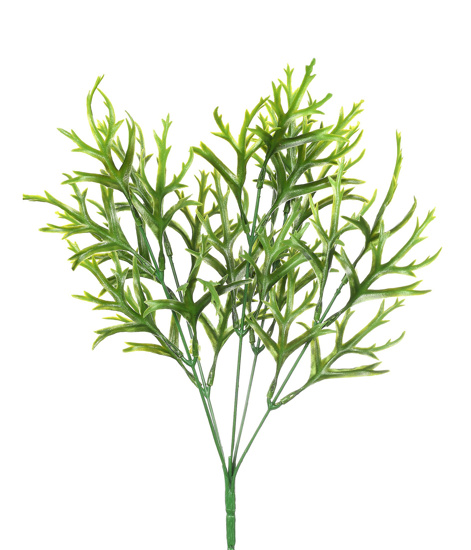 Destaque sua decoracao com o visual leve e elegante da Folhagem Artificial Coral Verde. Com 35 centimetros de altura e 5 ramos com folhas finas e alongadas, essa planta artificial remete aos formatos organicos dos corais, trazendo um toque moderno e natural para arranjos e vasos.