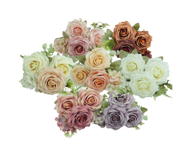 Buque de rosas artificiais luxo com acabamento de qualidade superior. Pigmentação em tons outonados, com selagem diferenciada. O buquê tem 7 galhos e mede 33cm.
