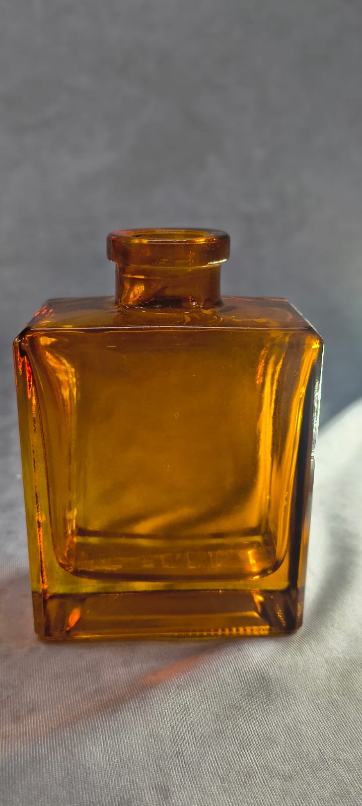 Este vasinho destaca-se pelo seu design minimalista e geométrico, apresentando um corpo retangular robusto que contrasta com o gargalo delicadamente arredondado. A cor ambar não é apenas uma escolha estética; ela evoca a nostalgia dos antigos frascos de boticário, trazendo calor e personalidade a qualquer ambiente.