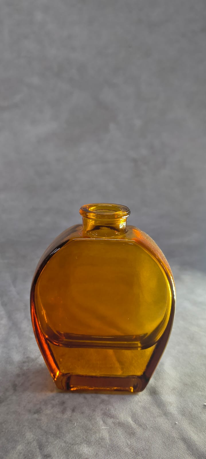 Este vasinho destaca-se pelo seu design minimalista e geométrico, apresentando um corpo retangular robusto que contrasta com o gargalo delicadamente arredondado. A cor ambar não é apenas uma escolha estética; ela evoca a nostalgia dos antigos frascos de boticário, trazendo calor e personalidade a qualquer ambiente.