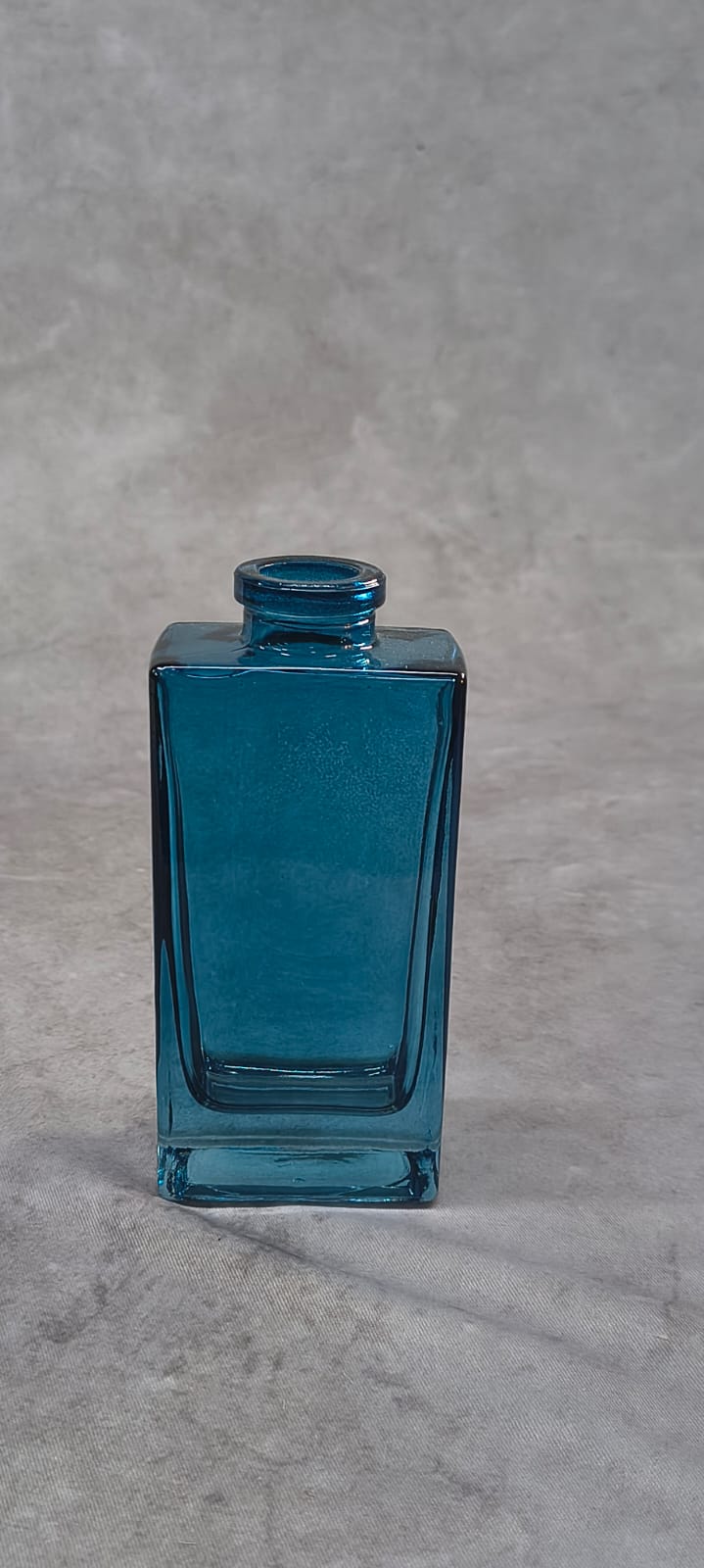 Este vasinho destaca-se pelo seu design minimalista e geométrico, apresentando um corpo retangular robusto que contrasta com o gargalo delicadamente arredondado. A cor azul não é apenas uma escolha estética; ela evoca a nostalgia dos antigos frascos de boticário, trazendo calor e personalidade a qualquer ambiente.
